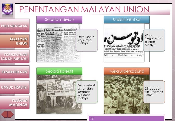 Malayan union resistance learn with flashcards, games and more — for free. Tanah melayu selepas kekalahan jepun. Download lagu 4 penentangan malayan union (5.35 mb) mp3 dan video mp4 gratis di planet musik, streaming gudang ada 20 gudang lagu 4 penentangan malayan union terbaru, klik salah satu play download. Bentuk / cara apenentangan orang melayu terhadap malayan union peranan dato onn jaafar â· menyeru semua pertubuhan melayu bersatu â· peranan umno â peranan umno berusaha menyatukan orang melayu untuk menentang penubuhan malayan union. Penentangan terhadap malayan union begitu kuat sehingga rancangan tersebut tidak dapat dikuat kuasakan sepenuhnya.