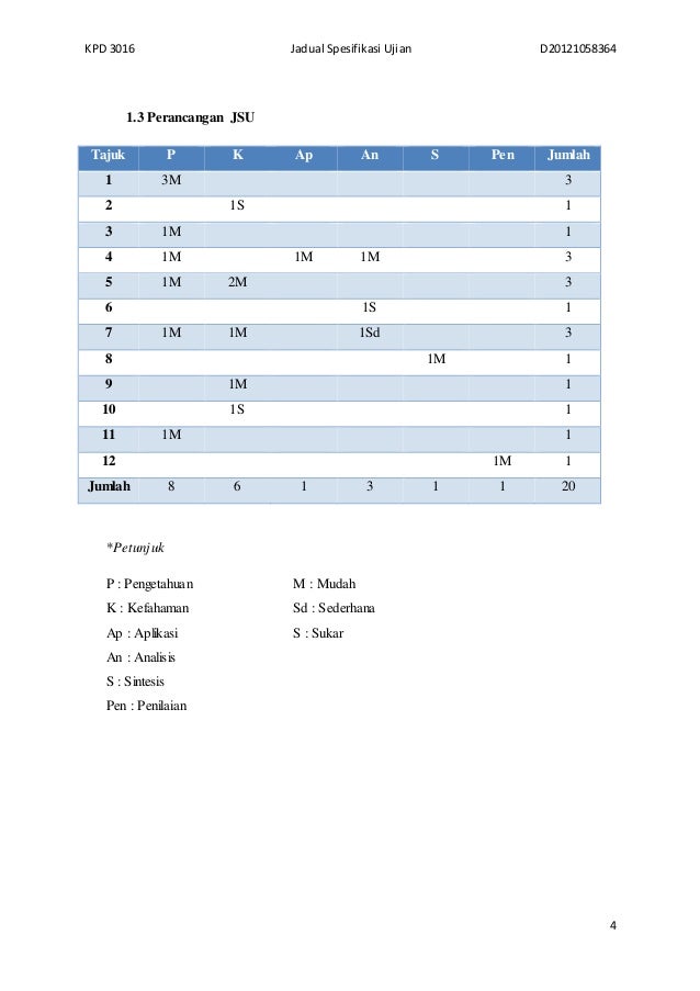 Related : Jadual Spesifikasi Ujian Pdf / View jsu.pdf from pendidikan 3193 at ipg kampus bahasa melayu..